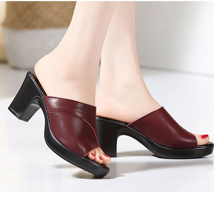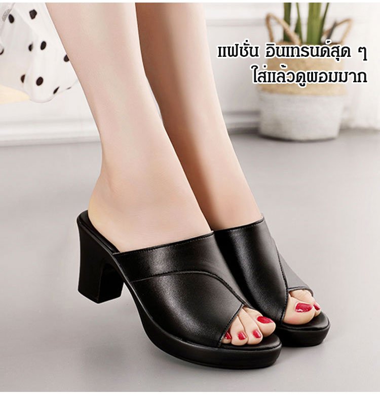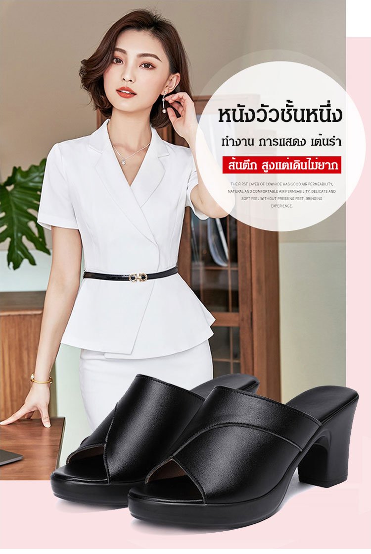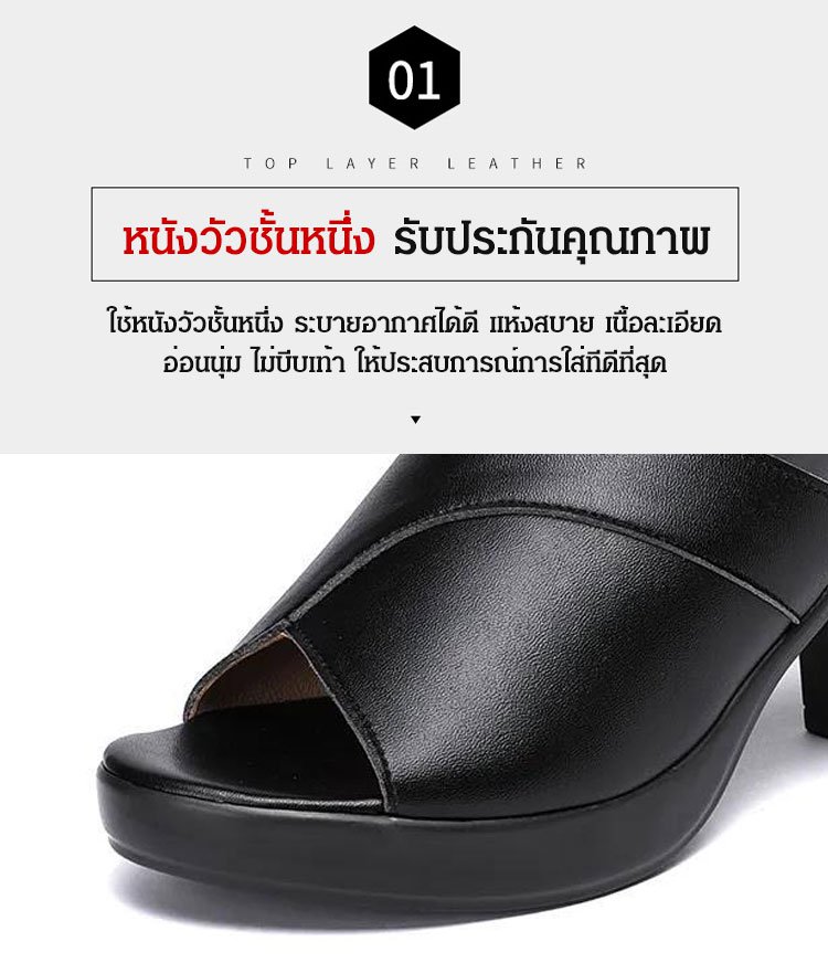 รองเท้าแตะส้นสูง แมตช์ง่าย สูงขึ้น 6 ซม.ดูผอม ทำจากหนังวัว ไม่บีบเท้าระบายอากาศได้ดี ช่วยให้เท้าที่เย็นสบายในหน้าร้อน